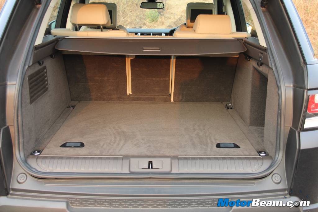 All the controls inside are well laid out and in easy reach of the driver. The steering is slightly different than that found on the other Range Rovers and carries the buttons for the Bluetooth telephony and cruise control. The buttons on the stalk operate the multi-information display which has plenty of options including minute things to alter driving features and vehicle set-up. The instrument cluster is an analogue unit but the car can be specified with an LCD screen for the cluster like in the Range Rover. The cabin itself is quite airy thanks to the large windows and the huge panoramic roof. There are plenty of storage spaces inside the cabin, right from the door pockets to the centre console and the rear seat arm rest which also gets cup holders. The boot is huge and gets a powered tailgate. There is a charging point in the boot and secret seating can be opted for to make the Range Rover Sport a 7-seater. What is truly worth a mention is the spare wheel, which is full sized in spite of the tyre size being a massive 255/55/20! No other car in the segment comes with a full sized spare wheel.