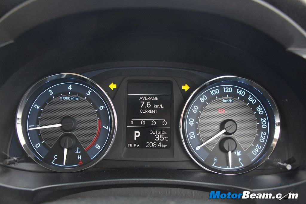 To take control of the ratios, it comes with steering mounded paddle shifts that give reassuring feedback and the shifts are lightning quick. Shifting ratios is quite fun actually and it doesn’t even hesitate much in downshifting because of the flexible CVT mechanism but when it does, a ‘beep-beep’ sound comes from the cluster that you can’t downshift further, smart! This setup is quite convenient for city and highway drivability. Again, both the engines are offered keeping in mind fuel economy and practicality but not outright performance, which is better than rivals. Expect both diesel and petrol engines to be more frugal because of the lighter weight of the new Toyota Corolla Altis. MID of our media test cars showed fuel average of 13.8 km/l for the diesel and 7.6 km/l for the petrol automatic, which can be taken with a pinch of salt because the cars were redlined most of the time.