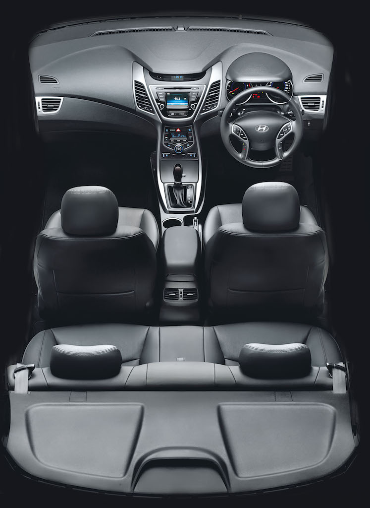 Interiors – Retaining the layout from the outgoing version, the interiors on the new Elantra have been done up in an all-black theme and get new leather upholstered seats, metallic scuff plates, sporty looking aluminium pedals, new ergonomically positioned console box with armrest and rear air-con vents.