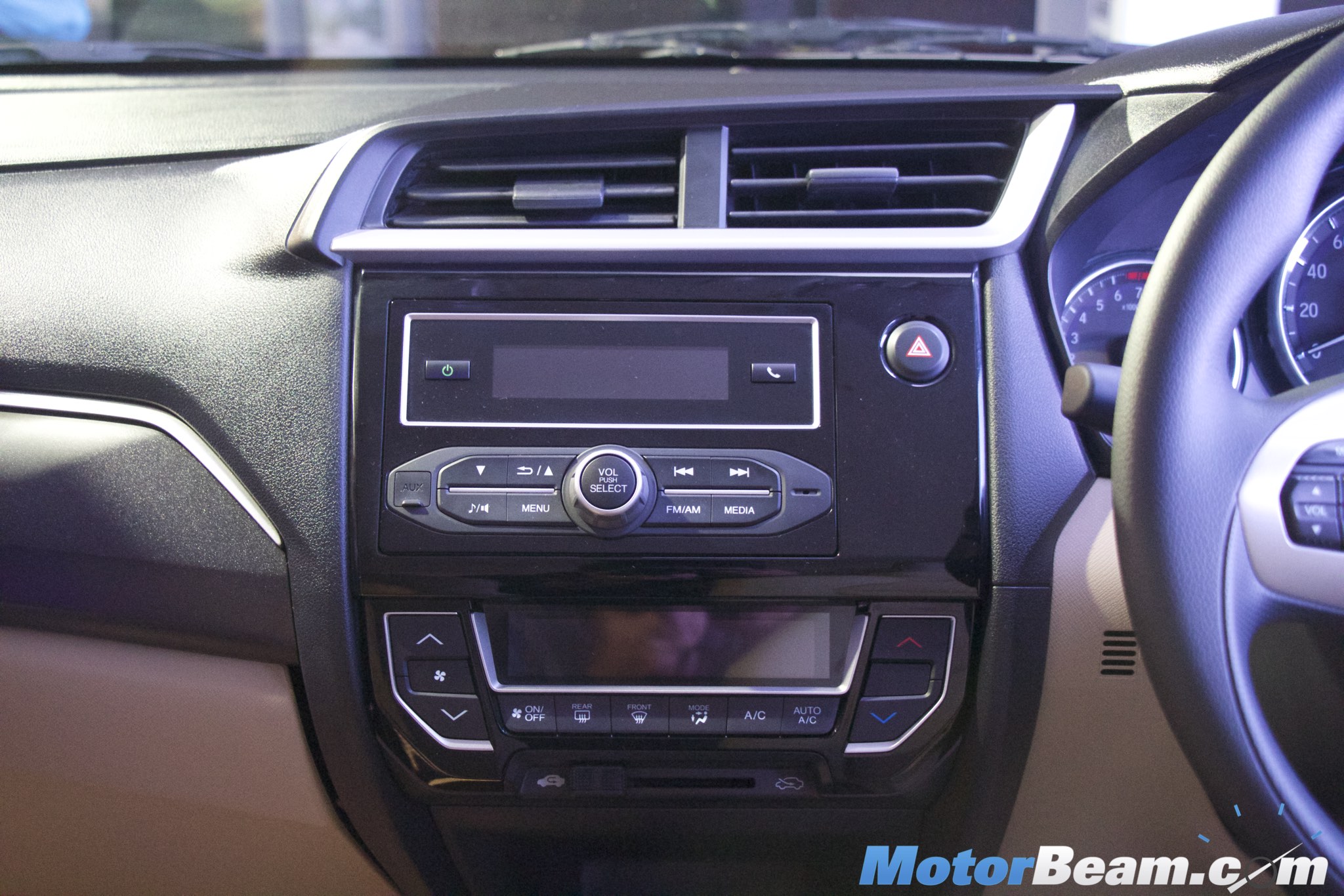 The cabin of the 2016 Honda Amaze facelift has got an all-new dashboard and centre console borrowed from the City. The compact sedan is now equipped with much awaited automatic climate control while the instrument console is also similar to that of the City while the steering wheel and gear lever remain unchanged. Customers of the Amaze can opt for airbags even in the base trims. The Amaze also gets a new audio system with Bluetooth functionality.