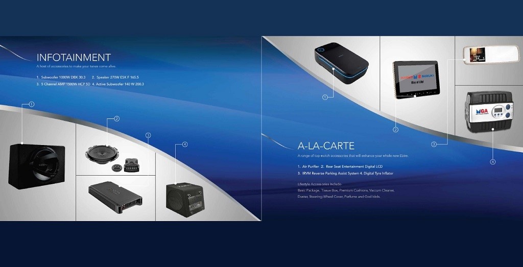 The 2017 Maruti DZire is available with a host of accessories and two styling packages.