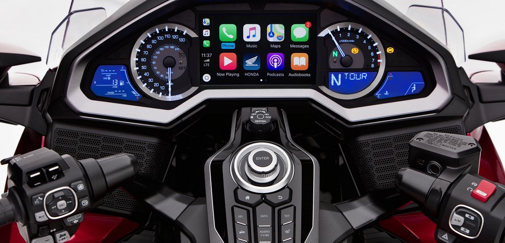 Other notable features in the 2018 Honda Gold Wing include a 7.0-inch TFT colour instrument display with Apple CarPlay, full LED lighting, auto-cancelling indicators, Smart Key control and electrically adjustable windscreen (for angle and height).