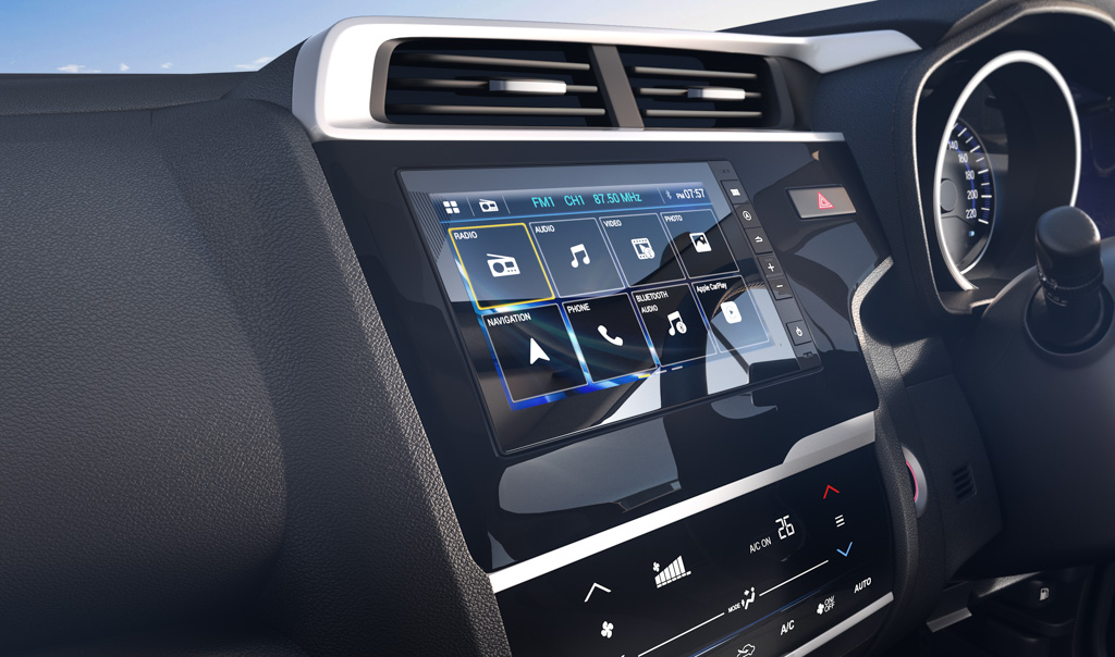 On the inside, the Jazz S variant comes with a four-speaker audio system with a 3.5-inch screen, steering-mounted audio controls, driver’s seat height adjust, a front-centre armrest, power-adjustable wing mirrors, driver and co-driver vanity mirrors, rear parking sensors and a rear defogger. The mid-spec V trim in addition gets keyless entry and go, automatic climate control, steering-mounted telephone controls, a 5.0-inch touchscreen infotainment system that doubles as a reverse camera display and premium beige interiors. The top-spec VX variant gets a larger 7.0-inch touchscreen system with navigation, Apple CarPlay and Android Auto, electrically adjustable and folding wing mirrors with integrated indicators, and leather on the steering wheel and gear knob.