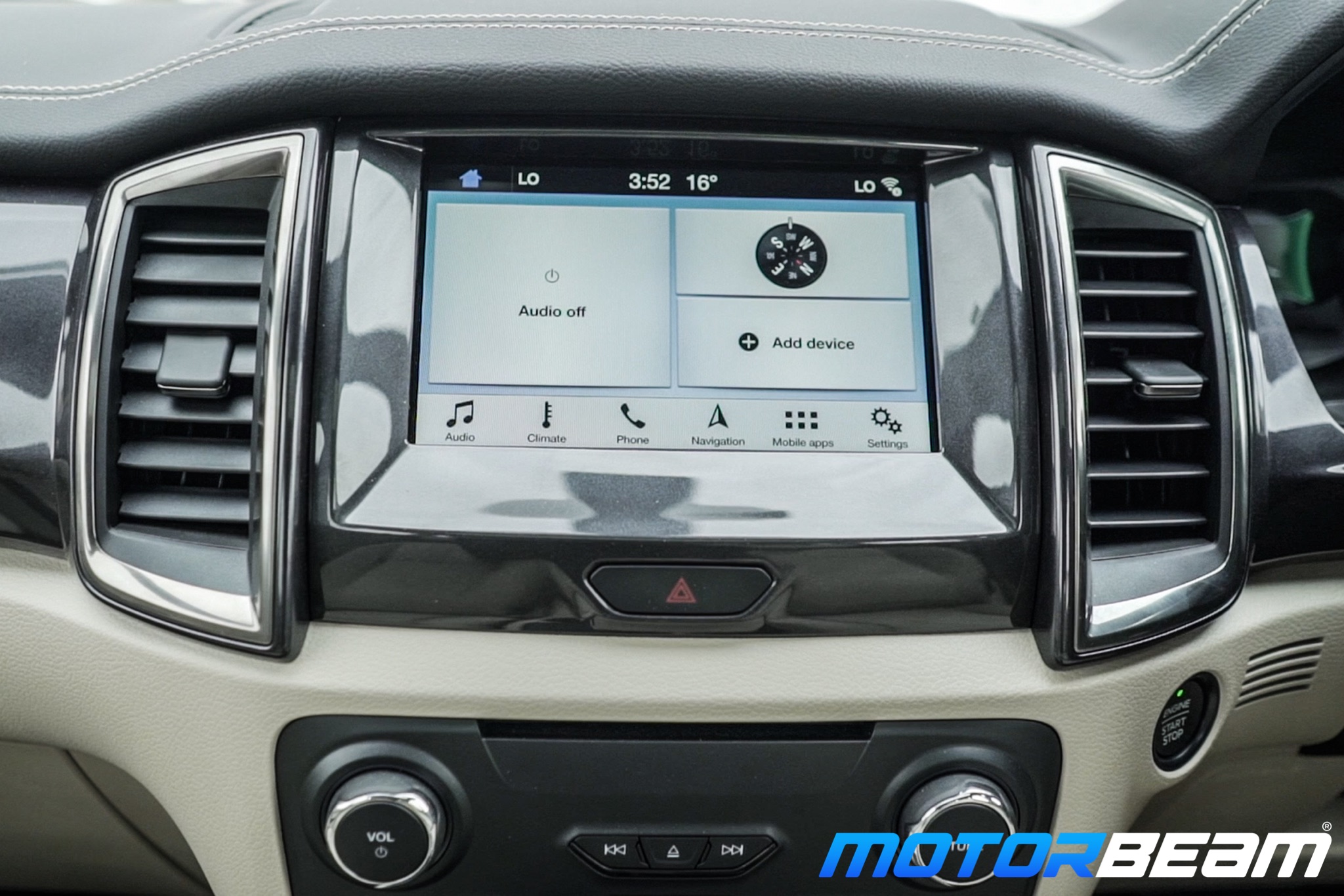 Grab the door handle and step up inside, you’ll notice that the Ford Endeavour comes with a black and beige dashboard rather than the old car’s brown and beige. Also you’ll notice that you don’t need a key for starting up the car as Ford has now made available a push button start. In terms of equipment, the Endeavour also gets hands-free boot assist, Sync 3 UI, electrically adjustable front seats, 7 airbags, Hill Start Assist, Hill Descent Control, Rollover Protection, panoramic sunroof and dual zone climate control. Ford has deleted the headlamp washers that were present in the older car.