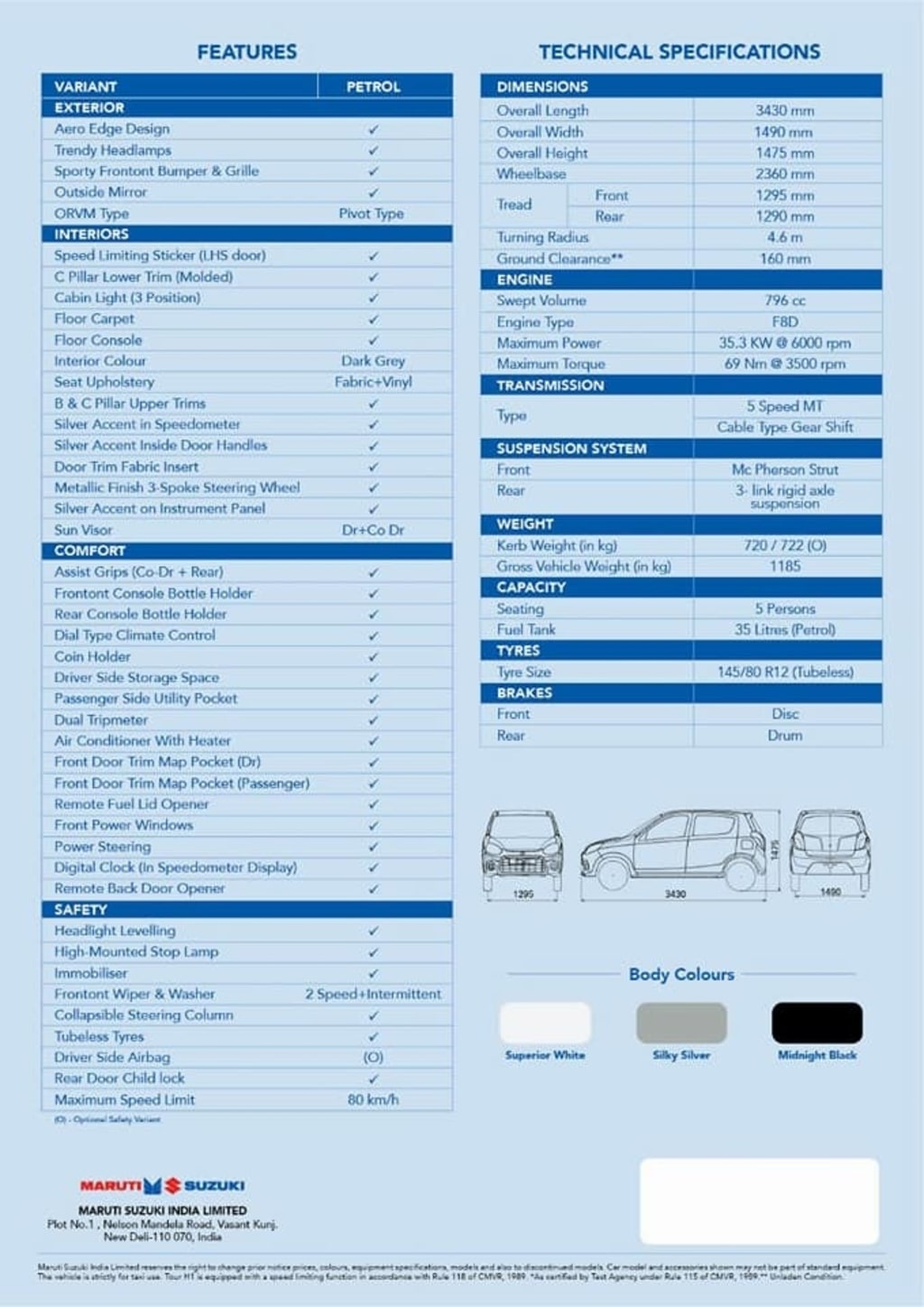 Maruti will be launching a very basic, taxi version of its top-selling Alto model to attract the taxi drivers and taxi fleet operators in India. The official announcement is yet to be made but specification details have leaked which confirm the name to be Maruti Tour H1.
