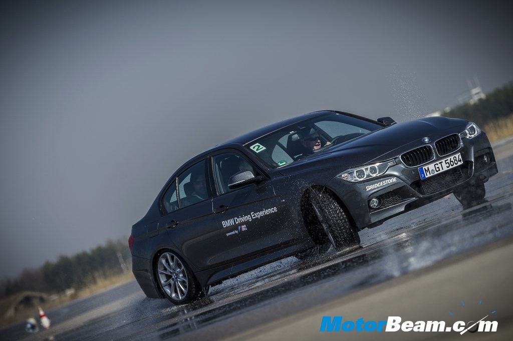 Up next was the most fun part of the program. Understanding understeer and oversteer. To explain in simple terms, understeer is when the front tyres lose grip and the car does not make the turn and goes straight on. Oversteer is when the rear tyres loose grip (sudden application of power on a slippery surface) and the rear steps out of line and the car goes into a spin. For these exercises, there was a special section of the track. A circular section which was artificially made slippery with the help of water sprinklers. Now before you feel that too much water is being lost in this exercise, we will shift off the topic momentarily. BMW, as a group, takes all possible steps to conserve the environment. The water used in the exercise (barring evaporation losses) is collected and stored in underground tanks to be reused, making the process very environment friendly. Getting back to the track, to experience understeer and oversteer, we have to first disable DSC (Dynamic Stability Control) by holding the DSC button for three seconds. DSC includes traction control, electronic brake force distribution and a host of electronic features which ensure that the car is stable in all conditions.