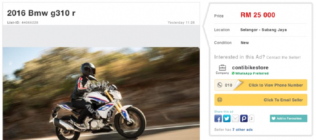 The much awaited BMW G310R seems to have gone on pre-booking in Malaysia as per a listing on a local online classified website.