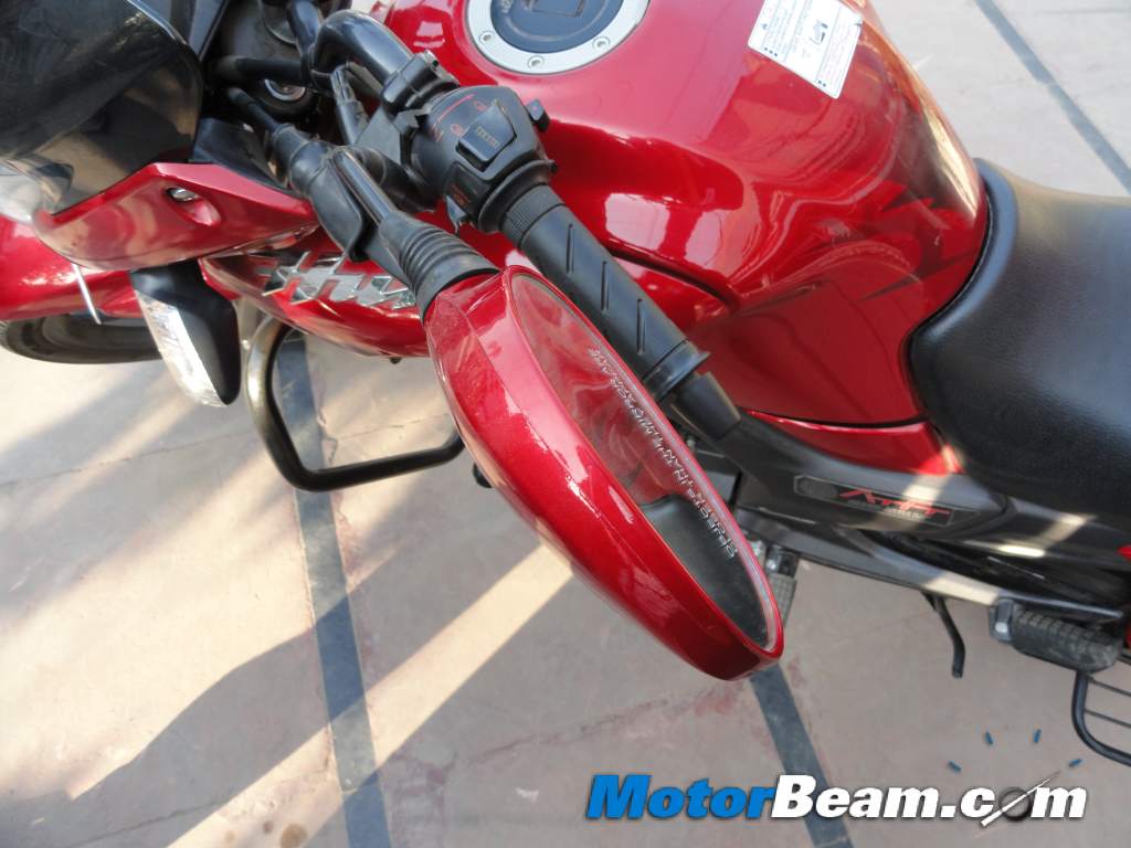 Styling – The first thing that you see is of course the styling and looking at one shot, it’s not bad. It has got front fairings at the front of the fuel tank near the thigh rest areas. It also has miniscule additional fairings near the front shocks at the wheel arch location. This looks quite cool! The front lights look almost the same with no significant changes to it. One look at them and you will say that is the typical Hero Honda. The tail lights look nice with LED lights in it. All back finish has been provided to the engine, and exhaust tail pipe. The rear view mirrors have some solid amount of support material. All in all not much changes.