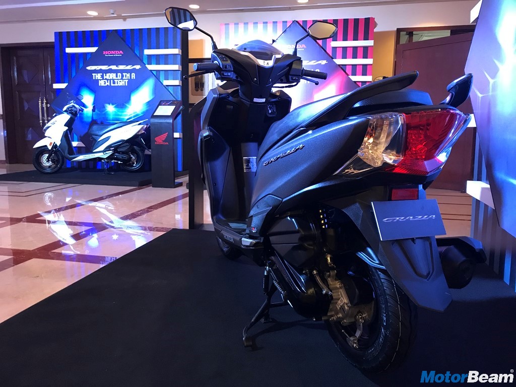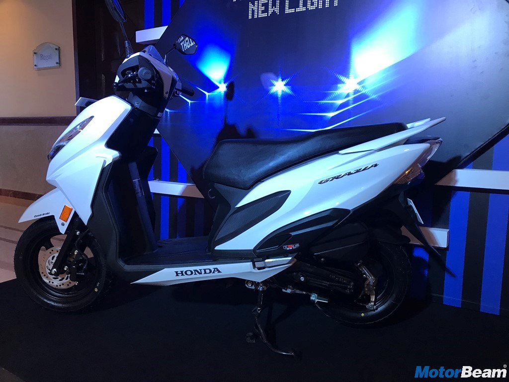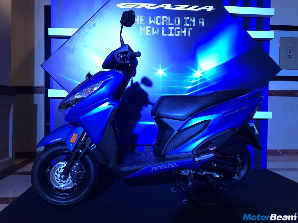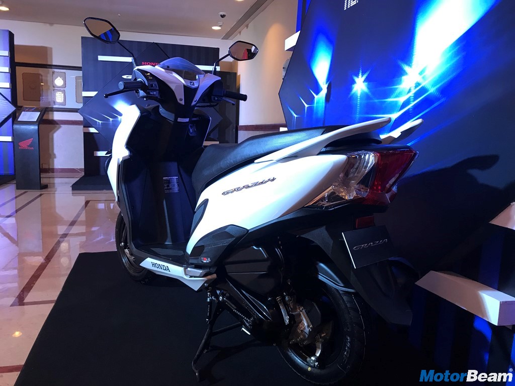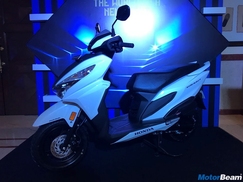 The Honda Grazia comes powered by a 125cc air-cooled 4-stroke motor that produces 8.5 HP of power at 6500 RPM and 10.5 Nm of torque at 5000 RPM. The BS4 compliant 125cc unit comes with a CVT gearbox. Top speed is rated at 85 km/hr. Suspension duties are via telescopic forks up front and hydraulic spring at the rear while braking is taken care by 130 mm drum/190 mm disc at the front and 130 mm drum at the rear. Honda is also offering Combi-Brake System with Equaliser.