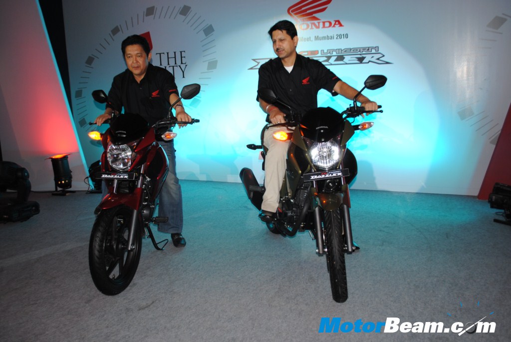 Honda Motorcycle launched the CB Unicorn Dazzler in Mumbai at Intercontinental, the Lalit. The company has priced the CB Unicorn Dazzler at Rs. 67,080 (ex-showroom, Mumbai) and the bike is available in only one variant – self start with dual disc brakes. The company has targeted the bike at youngsters and college students and has focused on performance along with good mileage (60 kmpl claimed). We had a small test ride of the Dazzler and we found the bike impressive. The slight increase in power is noticeable and the bike picks up at low speeds with more enthusiasm.