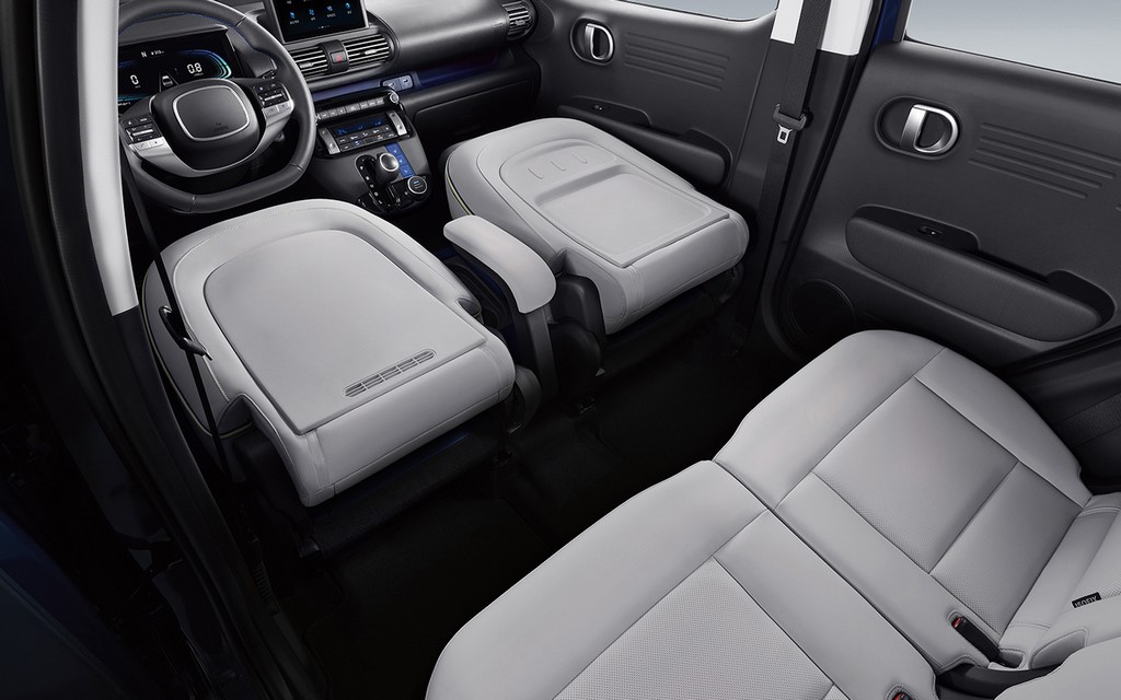 Objects that are 2059 mm long can be fitted in the Hyundai Casper interior provided both rows of seats are folded flat, while the boot space (with rear seats slid fully forward) is 301 litres.