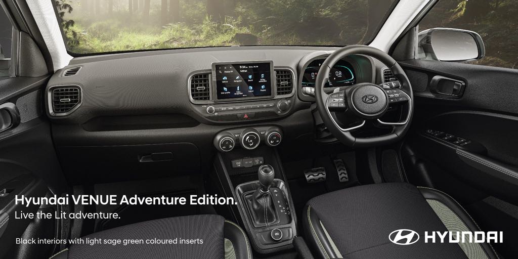 The Venue Adventure Edition comes in four monotone colours: the newly introduced Ranger Khaki, Abyss Black, Atlas White and Titan Grey. Additionally, buyers can opt for three dual-tone colour schemes – Ranger Khaki with black roof, Atlas White with black roof and Titan Grey with black roof – available on the SX and SX(O) trims for an extra Rs. 15,000/-.