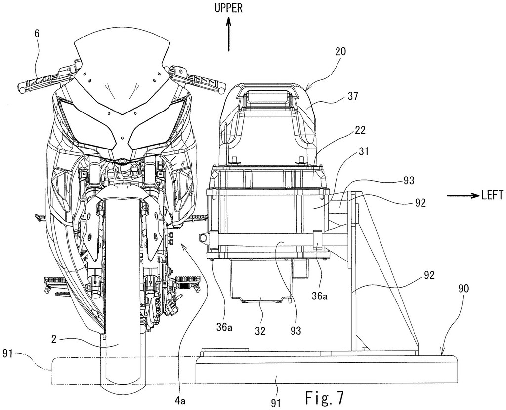 Kawasaki’s patent filing and drawings hint towards a swappable battery solution on a fully faired motorcycle.