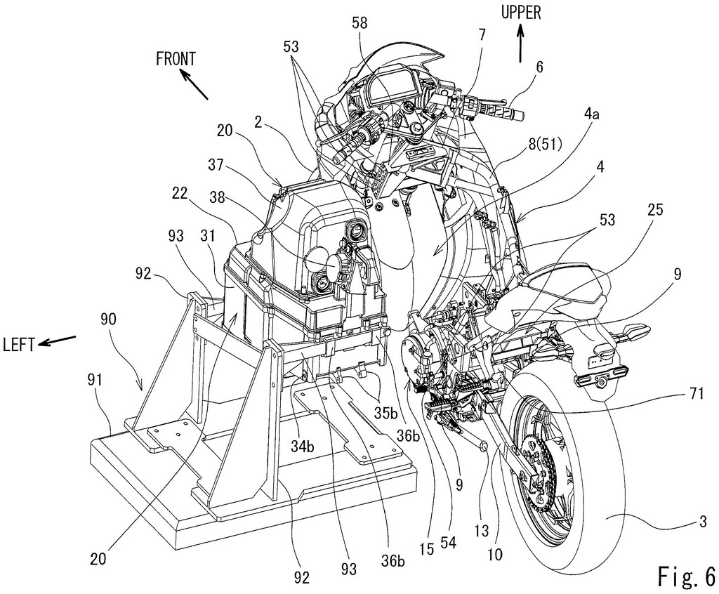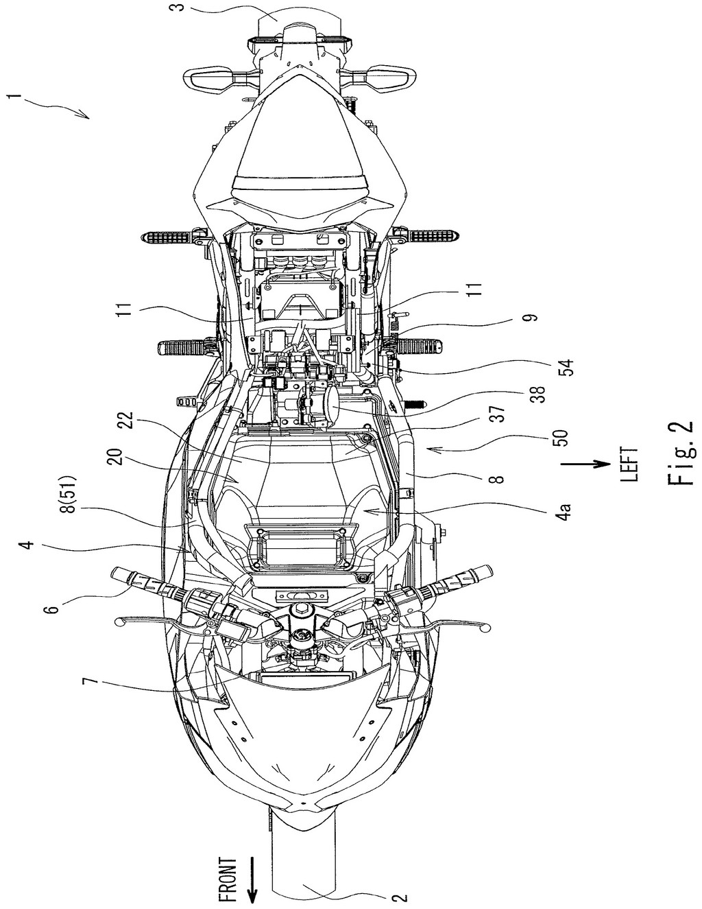 The tubular type frame looks conventional, but it’s designed to be modular. It can be seen on the drawings that the side of the frame can be detached from the rest of the motorcycle. This will allow access to the battery compartment of the motorcycle, which can then be swapped with a fully charged battery. Japanese motorcycle giants namely Honda, Yamaha, Kawasaki and Suzuki have already joined hands to develop swappable battery technology and charging standard for electric motorcycles. The patent also shows the direction to where the companies are headed.