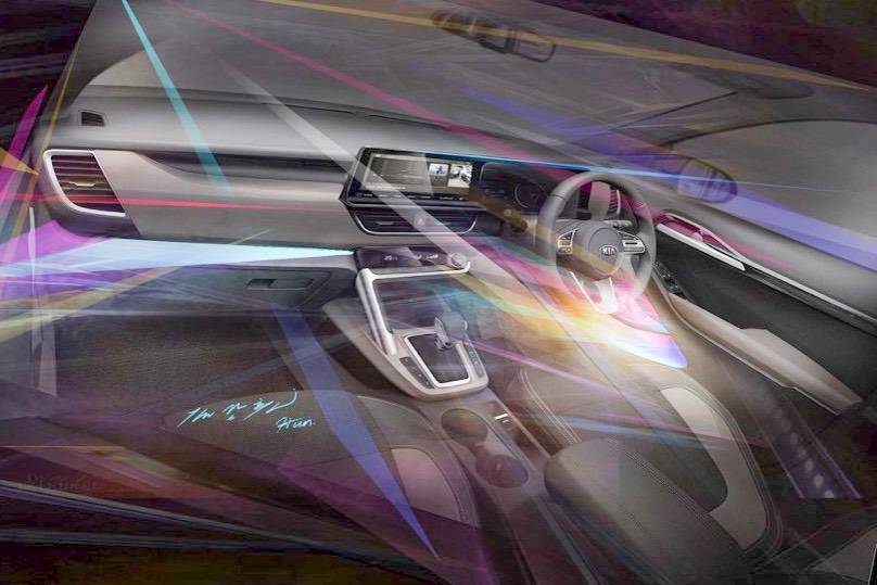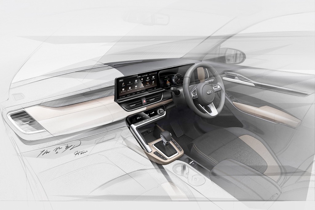 Kia SP2i interior sketches reveal the design and features of the first Kia to launch in India.