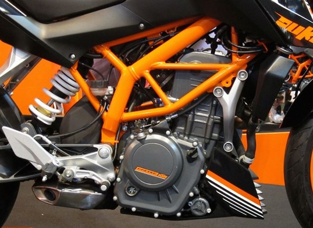 The 250cc engine on the Duke 250 and RC 250 is a trimmed version derived from the 373.2cc unit that powers the Duke 390 and RC 390 in KTM’s lineup.