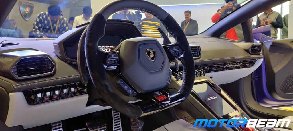 The Huracan Evo RWD is powered by a 5.2-litre naturally-aspirated V10 engine producing 610 HP at 8000 RPM and 560 Nm of torque at 6500 RPM. Top speed is claimed at 325 km/hr. 0-100 km/hr acceleration timing is 3.3 seconds.