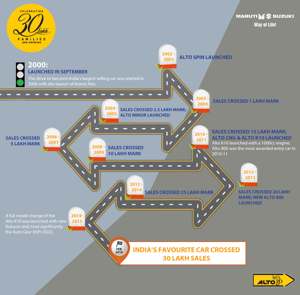 – The Maruti Suzuki Alto has sold 30 lakhs units which no other Indian car has ever done