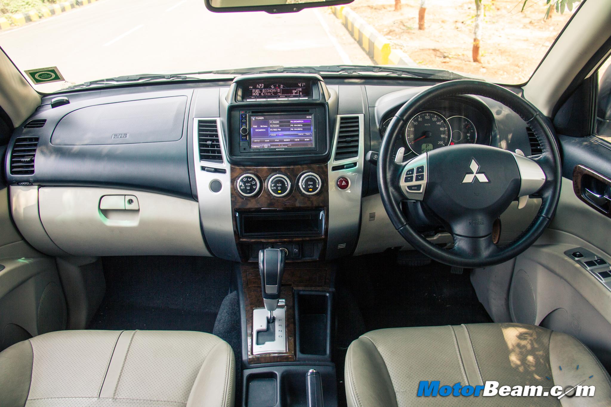 Interiors – Both these Japanese cars are similar yet different. What is similar are the equipment levels, both these SUVs gets front airbags, steering mounted audio controls, touch-screen infotainment system with USB, AUX, Bluetooth connectivity (the mic, speaker and wiring on the Pajero is exposed like it’s an aftermarket job), navigation, reversing camera, rear parking sensors, electric driver seat adjustment, multi-information display on top of the centre console (the Pajero Sport has more to display like elevation, etc.), leather seats and projector headlights. The Fortuner does get more features like DVD playback, voice commands, digital climate control, automatic headlights and cruise control. The audio system and sound quality on the Pajero Sport is better and it also feels more appealing as far as the dashboard design goes. The beige interior in the Mitsubishi feels more airy than the all-black cabin of the Fortuner.