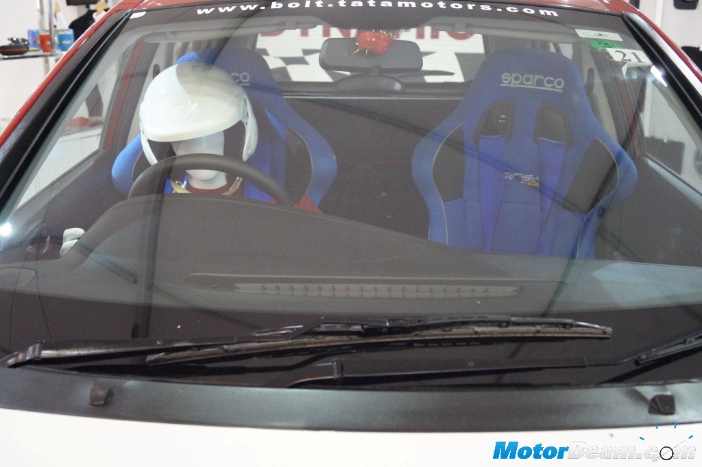 The rally spec Tata Bolt was upgraded for the Coimbatore rally with a roll cage, racing seats, 5-point seatbelts among other modifications.
