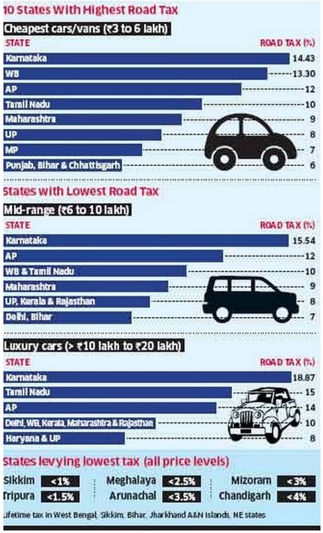 One of the few ignored expenditures associated with a vehicle, Road Tax is the currently the highest in Karnataka and lowest in the north-east region of India.