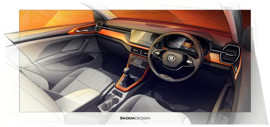 Skoda Auto has released the official interior design sketches of the Kushaq compact SUV that is due for launch later this month.