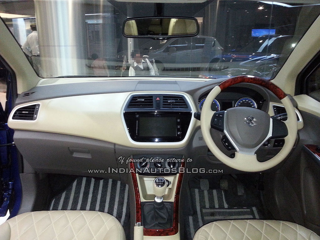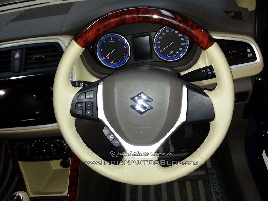 The dealership has upgraded the all-black interiors on the S-Cross to a tastefully done beige with wood inserts improving the premium quotient on the crossover.