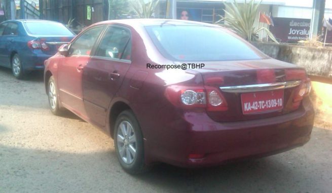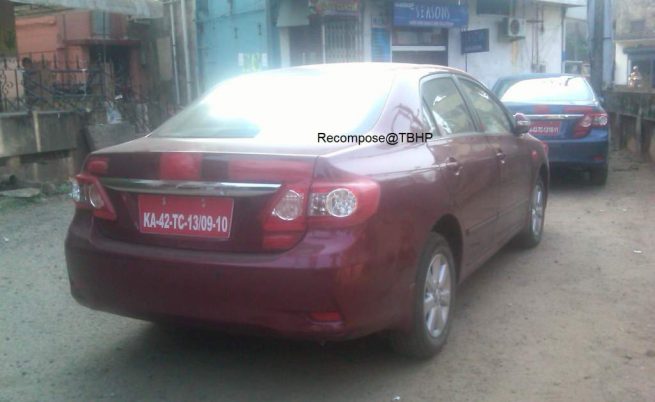 Toyota has been extensively testing the 2011 Corolla Altis. The company will launch the Corolla Altis facelift soon, which now features a revised front bumper (with inverted air intake and new shape fog lamps), new side indicators, new tail light with different reflectors, wider chrome lip on the boot and aluminum inserts on the steering wheel. Spotted in Mangalore and Bidadi, the 2011 Toyota Corolla Altis is all set to get a 1.6 liter petrol motor to rival the Honda City and Volkswagen Vento headon. This is probably the reason why Toyota has been extensively testing the car before launching it.