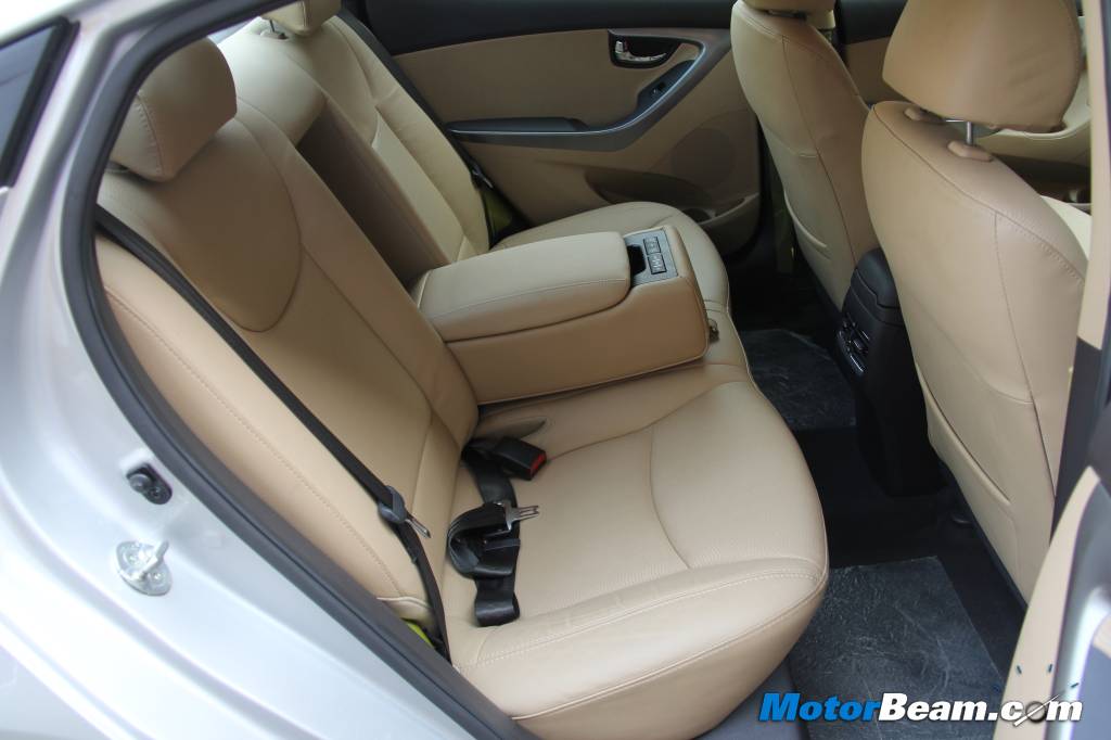 Interiors – The Hyundai Elantra is as sporty on the inside too. Futuristic ‘Waterfall Effect’ instrumentation looks fabulous and is in sync with the Fluidic philosophy. The dashboard is of soft touch type and overall quality is top notch, even better than the Verna. Silver inserts on the dash enhance the overall feel and run all around the gear lever. There are cup holders in the central armrest and bottle holders in the door, however, a 1-litre bottle will struggle to fit there. There is a healthy list of equipment to pamper the driver.