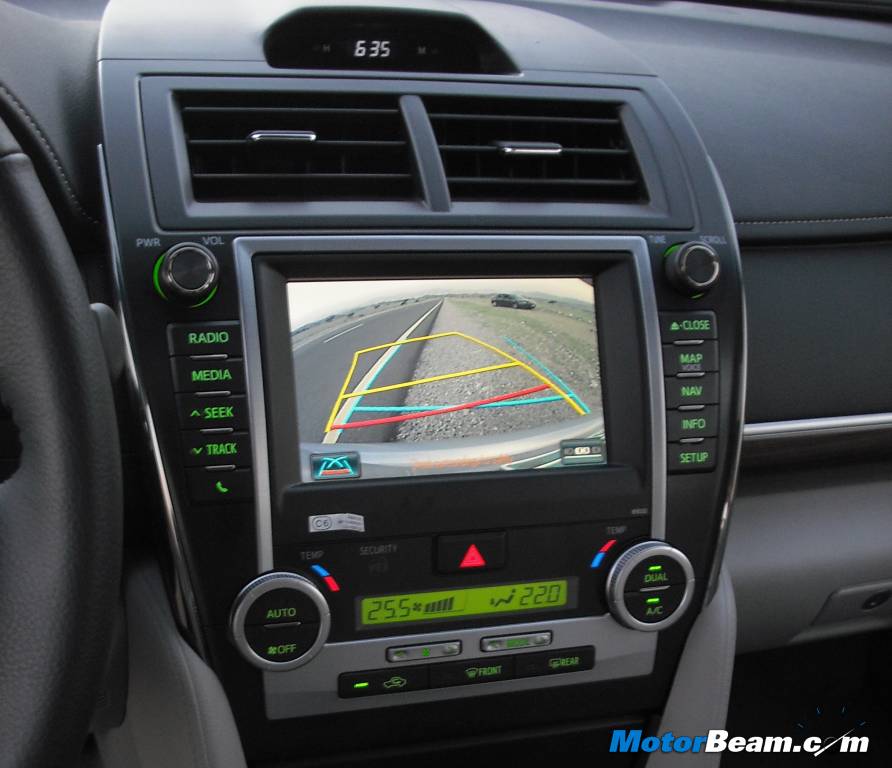 The center console features a new touch screen audio system, which also displays view from the rear parking camera. A dual zone climate control is present as well and the new Camry has very good quality buttons on the dashboard.