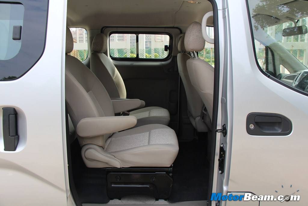 Interior – The Ashok Leyland Stile gets more or less the same interior as the Nissan Evalia but with slightly improved ergonomics and lesser features. You have to climb inside the cabin, ingress takes a bit of an effort because of the high floor placement. There is an instant feeling of roominess as you enter the cabin because of the large windshield, light colour theme and high seating position. The dashboard layout is plain and simple. You will find a lid covering the glove box, which was open in the previous version of the Evalia. Another change to notice is the scooped out storage section above the glove box, which is because of the absence of airbags on the Stile, even on the range topping trim. The dashboard mounted gear lever positioning frees up space in the middle. The Nissan Micra derived steering wheel on the Stile has a reworked horn pad with an Ashok Leyland logo.