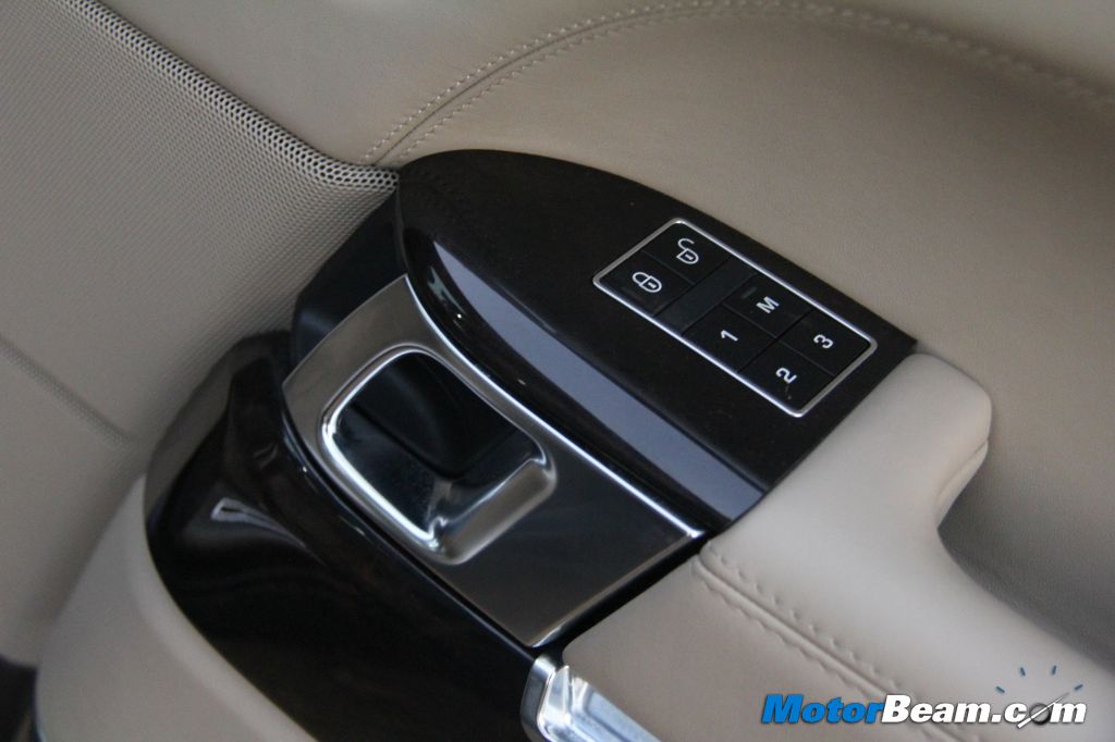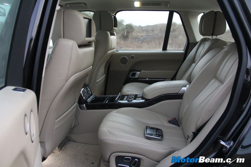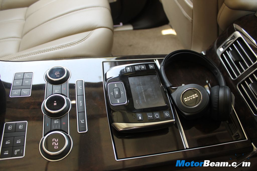 The Range Rover is now a 4-seater and every occupant gets to pamper themselves with the optional rear executive class seating. Each of the 4-seats are semi-airline leather seats with 18-way adjustment and massage function. Thus, each occupant gets the same set of buttons to adjust the seat to their liking. The headrests are particularly soft and the increase in wheelbase along with clever engineering has led to impressive rear legroom (increase of 118 mm over previous model). The rear seat occupants also get entertainment system with individual LCD screens, remote control and wireless headphones. The only gripe we have with the rear entertainment system is the TV, which somehow doesn’t catch proper reception. This issue is most likely an India centric one.