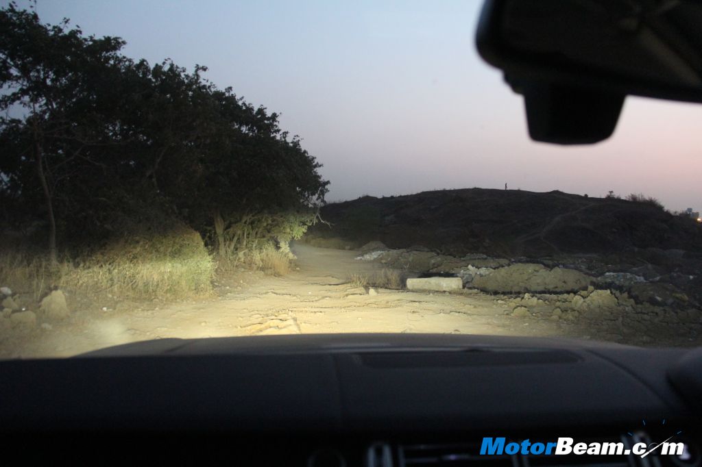 Land Rover designers haven’t even left the door handles which have been crafted with utter precision. The cabin has LED mood lightning, which highlight the cabin’s design in the night. The 29-speaker Meridian surrond sound system gives the new Range Rover an entirely different aural delight. Sound quality is crisp and can easily rival a disco. The twin-split tail gate is electronically operated and the Range Rover can fit in big bags without a hiccup. One need not push the door to close it, a slight tap is enough, as the doors have suction function to close the door even with a gentle nudge. The new Range Rover also boasts of the biggest panoramic roof, which weighs in at 52 kgs and gives a very airy feel to the cabin. We were impressed with the adaptive xenon headlamps which move quickly to point in the direction you are turning before you reach there. The illumination from the headlights is top class too.