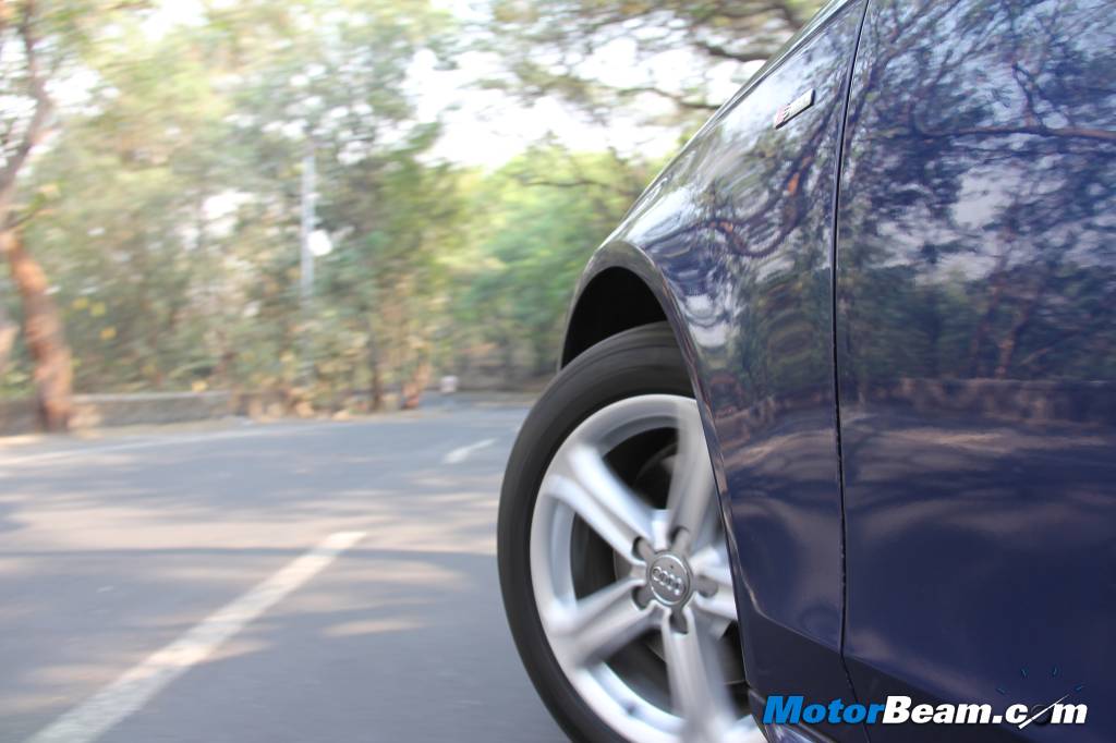 Interiors – Step inside and there is nothing different here too. You get a familar Audi cabin with exellent build quality and tasteful use of materials. The buttons are all in easy reach of the driver and the MMI system works well too. There is no skimping on equipment and the brown dashboard with beige leather seats give an airy ambience to the cabin. Space at the front is good but the rear isn’t as roomy with passengers finding rear seat legroom just about adequate. Headroom is good all around and the boot can accommodate 480-litres of luggage. Audi has shifted to a magnified right rear view mirror in its latest cars which has a lot of blind spots. Audio quality is good and the AC works well in these hot days to keep passengers cool. There is also a sunroof and quite a lot of storage bins inside the vehicle.