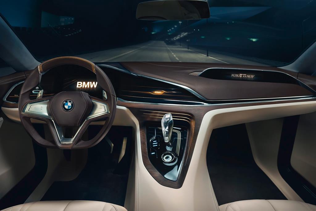 BMW has added ample equipment inside this Vision Future Luxury Concept. The doors have a suicide opening and both the rear passengers get separate tablets to play around with. The rear consists of two single seats which are designed to provide ultimate comfort. Both the rear passengers also get a folding table. The dashboard carries a futuristic design and the displays look very snazzy. BMW has also incorporated the new i-Drive controller in this concept. This 7-Series replacement is also equipped with a Laserlight system whose light beam is ten times more powerful than a conventional LED lighting system.