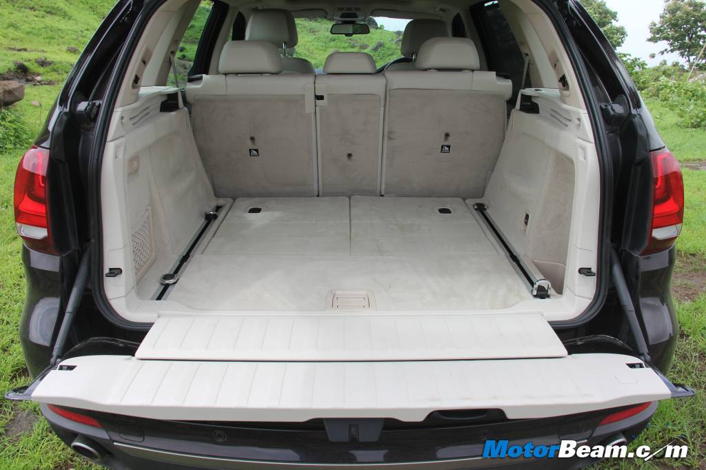 With the third row up, boot space is quite limited but you are sure to put the third row down and accept the fact that the BMW X5 isn’t even a make do 7-seater. With the last row folded (one can also fold the second row in 40:20:40 split), the boot is generous, there is a storage box on the right and a storage net on the left. There are storage hooks on the side as a net can be placed there. A tray opens which has some storage along with the towing hook, there is no spare wheel. The boot itself opens in two parts, it’s a split tail gate and that definitely makes loading big things easy. There is a power socket in the last row as well. The boot has an electric function for closing but won’t close if the lower gate is open.