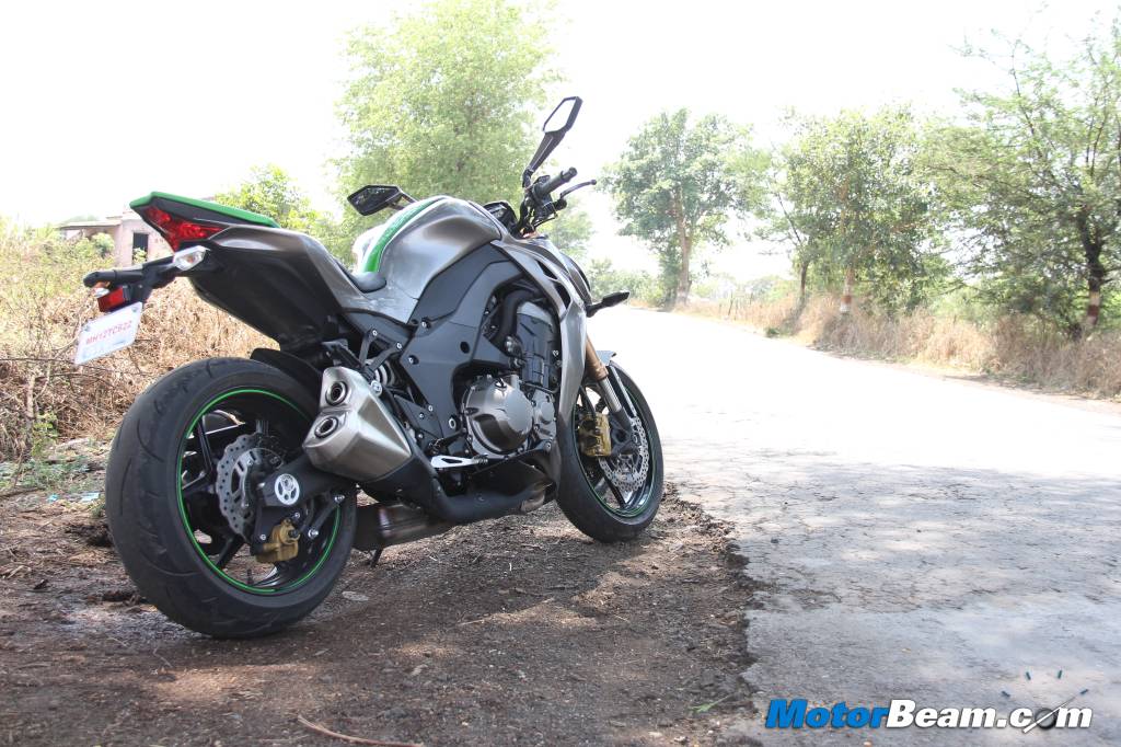 Ergonomics – Upright riding position with the handlebar placed lower is always a recipe for a sporty riding position. Rearset footpegs are not aggressively set and hence it does make journeys comfortable. The die-cast mirrors give a good view of what is behind and look great at the same time. The seat is well cushioned and supportive but the riding position slightly restricts movements, track days will confirm that though. The Z1000 provides very poor pillion comfort due to the small seat.