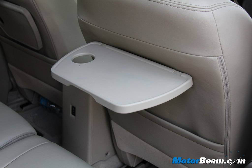 The seats all around are supportive and well padded. The second row of seats can accommodate a middle passenger, as the floor hump is small and the seats are wide. Legroom is adequate but not the best in the segment. The rear passengers also get foldable tray tables attached behind the front seats and B-pillar attached AC vents. We also found a concealed storage space underneath the mats of the second row. There is an electrically operated split gate that opens wide to a large 450-litre of storage space, which has an easy access. Some of the key features include smart key access with push button start/stop, auto headlamps, rain sensing wipers and so on.