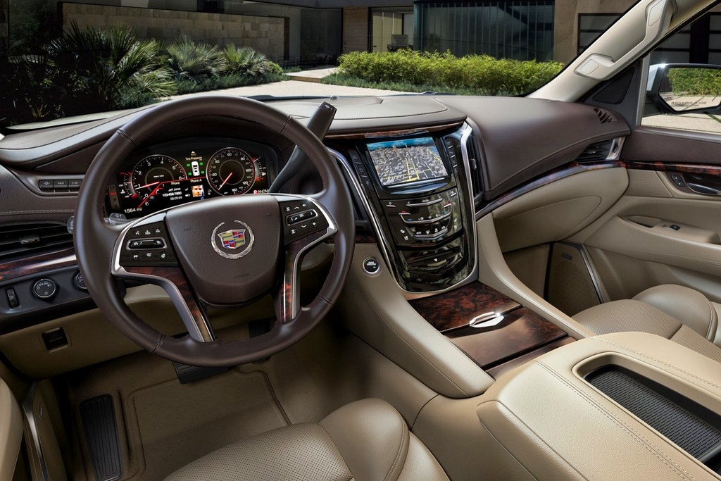The 2015 Cadillac Escalade is well-equipped with convenience and safety features such as Bluetooth phone and navigation systems, Blu-Ray DVD rear entertainment system, Driver Awareness package, Side Blind Zone Alert, Rear Cross Traffic Alert and Lane Change Alert. To prevent theft attempts, the new Escalade comes with intrusion sensor, inclination sensor and glass breakage sensors. The Cadillac Escalade is based on the traditional body on frame architecture and is offered in two wheelbase versions, 2946 mm and 3302 mm.