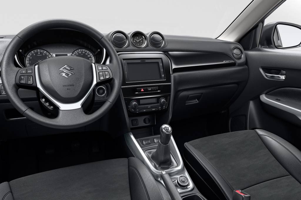On the inside, the Suzuki Vitara comes with a fairly simple layout featuring a dual-tone dashboard, multi-function steering wheel and a touchscreen infotainment system for all the major controls. You also get an old-school analogue clock resting between the centre air-con vents. Adding a premium touch are the brushed silver inserts on the dashboard, steering wheel and gear knob that add to the pleasing nature of the cabin. Suzuki will also provide a host of customization options on the Vitara for the exteriors and interiors to accentuate appeal towards younger buyers.