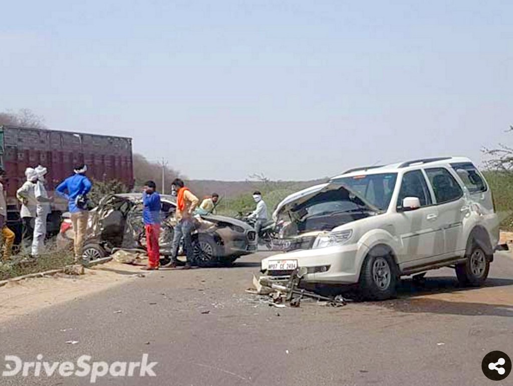 2017 Maruti DZire crashes against a Tata Safari Storme in Gwalior, Madhya Pradesh.