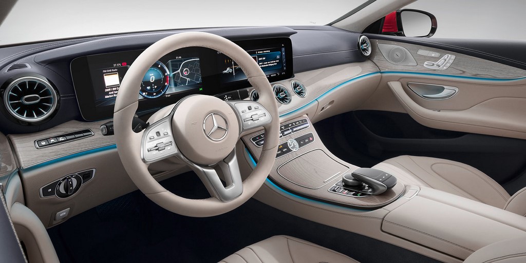 The 2018 Mercedes CLS gets an interior setup similar to the E-Class with subtle design tweaks. There are two 12.3-inch screens, one for the instrument cluster and another for the infotainment system. The steering wheel is a direct lift from the S-Class and the AC vents have the turbine design and also glowing feature (red for hot and blue for cold). Powertrains on offer range between four- and six-cylinder petrols and diesels, all of which are mated to a 9-speed automatic gearbox as standard. Mercedes’s AWD tech, 4MATIC is available on higher grade models but the base trims are rear-wheel drive.