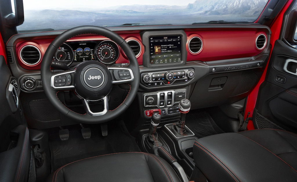 Inside the cabin, the 2019 Jeep Wrangler boasts a refreshed dashboard with an 8.4-inch touchscreen infotainment system with Apple CarPlay, Android Auto and navigation. It also gets passive entry, dual-zone automatic climate control, push-button start and leather upholstery. The seats are complemented by contrast white stitching.
