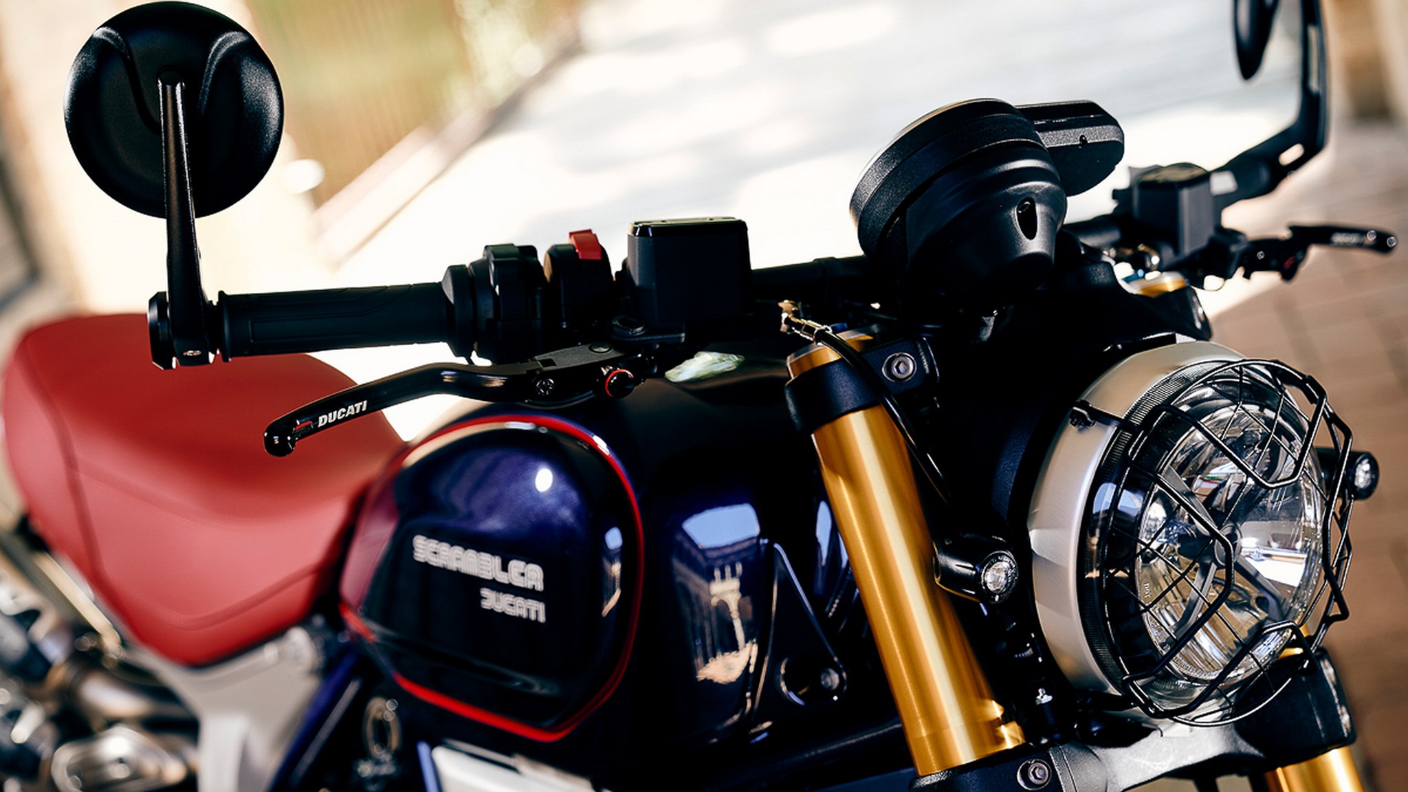 If you look closely, you’ll notice the Giugiaro-designed Ducati logo, tri-colour finished fenders, aluminium parts of the tank cap, fluid reservoir covers and the red-coloured frame sliders which look like the cherry on top of the icing.