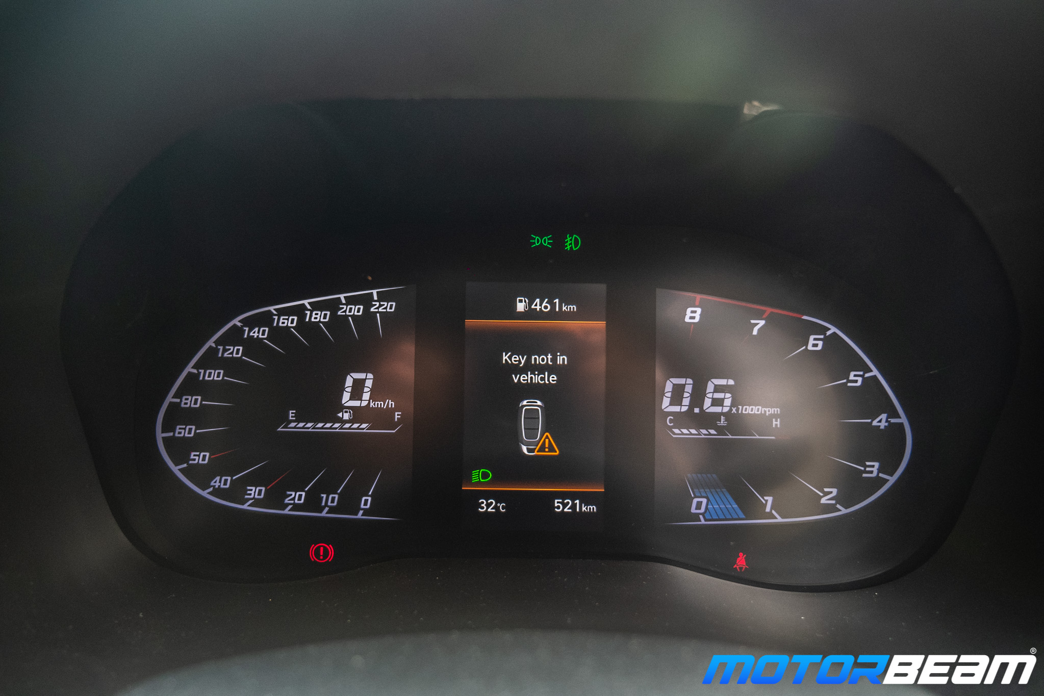 Interiors – The interior doesn’t get many changes other than the addition of features but the thing that stands out is the new all-digital instrument cluster that gets a 4.2-inch multi-information display in the centre. The dashboard design is similar but minor changes have been done to the design of the AC vents, more so in the centre console as the touchscreen size has increased from 7-inch to 8-inch, offering all the connectivity options you would expect including Apple CarPlay and Android Auto. The infotainment system is responsive and fluid to use, it also gets a reverse parking camera with display for the rear parking sensors (the Turbo also gets front parking sensors), Hyundai-Kia unique driver rearview monitor and an Arkamys audio system with 4-speaker and 2-tweeters (this is standard across the range) that offers good audio quality.