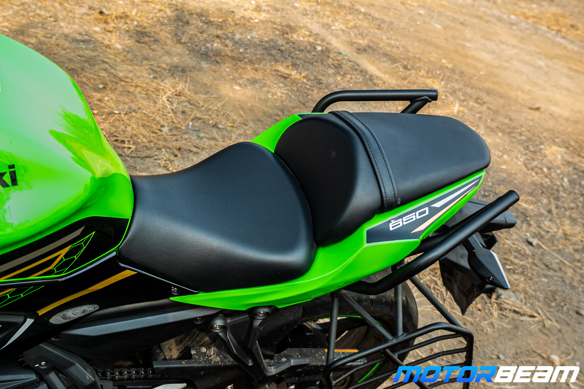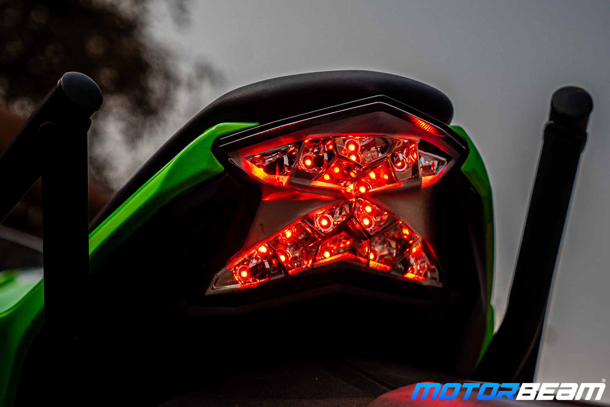 Kawasaki India offers the Ninja 650 in only one paint scheme while the international markets have 3 options, this doesn’t favour the Indian buyer. There are no changes made to the rear of the bike. The 2021 model gets a similar tail which looks very basic but offers decent mud protection. Also, the signature “X” shaped LED taillight remains the same which looks quite cool. The overall look of the bike is disgraced by the ugly looking rear grab handles and a barbeque grill like saree guard. Kawasaki should really improvise on these elements and come up with more thoughtful designs for the same.