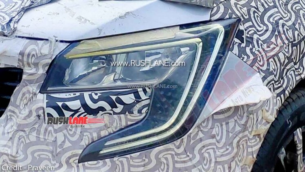 The 2021 Mahindra XUV500 has been spied once again and this time, we get a clearer view of how the car’s headlight design is like.