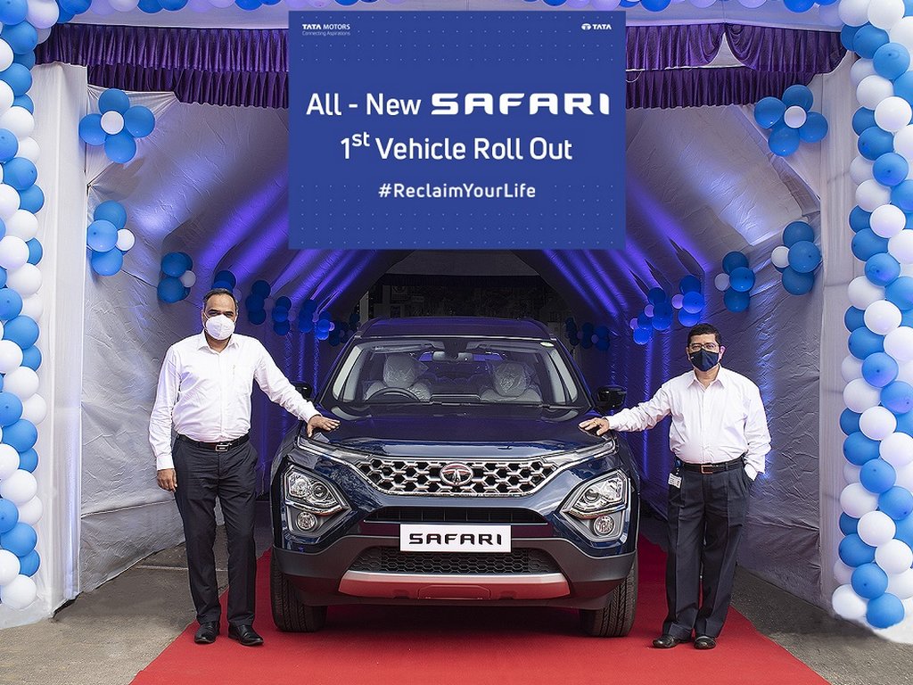 Tata Motors has released the official teaser of its 2021 Safari and the SUV’s images, while, today, it rolled out the first production unit of the car from its Pune facility.