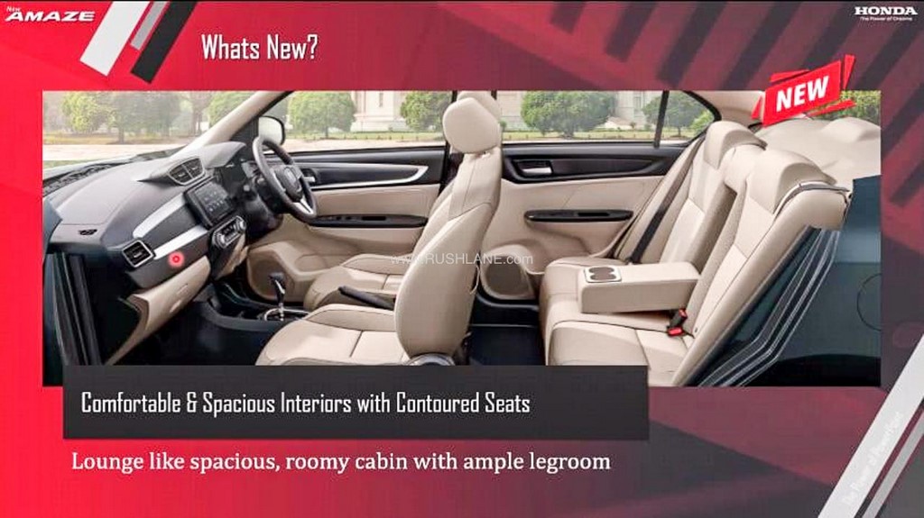 According to the 2022 Honda Amaze brochure, the compact sedan will get satin silver accents in the cabin, new seat upholstery and an updated infotainment touchscreen.