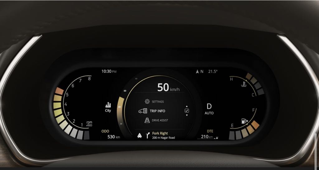 The system recognises traffic sign boards including speed limits, no overtaking, etc. signs and displays it on the instrument cluster to inform the driver.